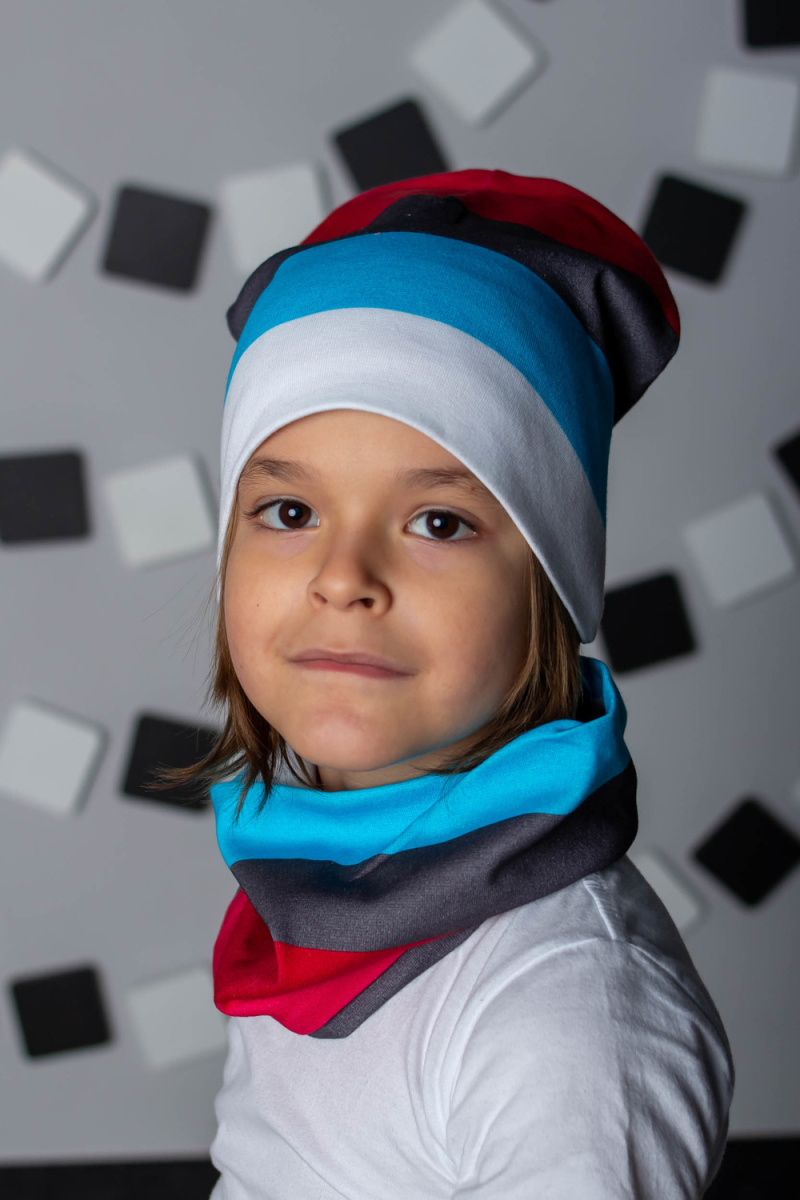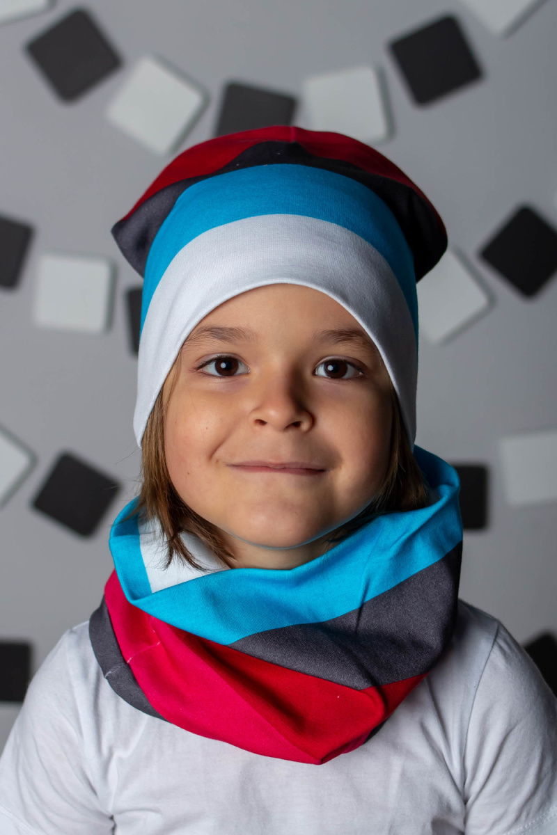 Комплект: шапка + шарф-снуд для мальчиков в насыщенной современной расцветке