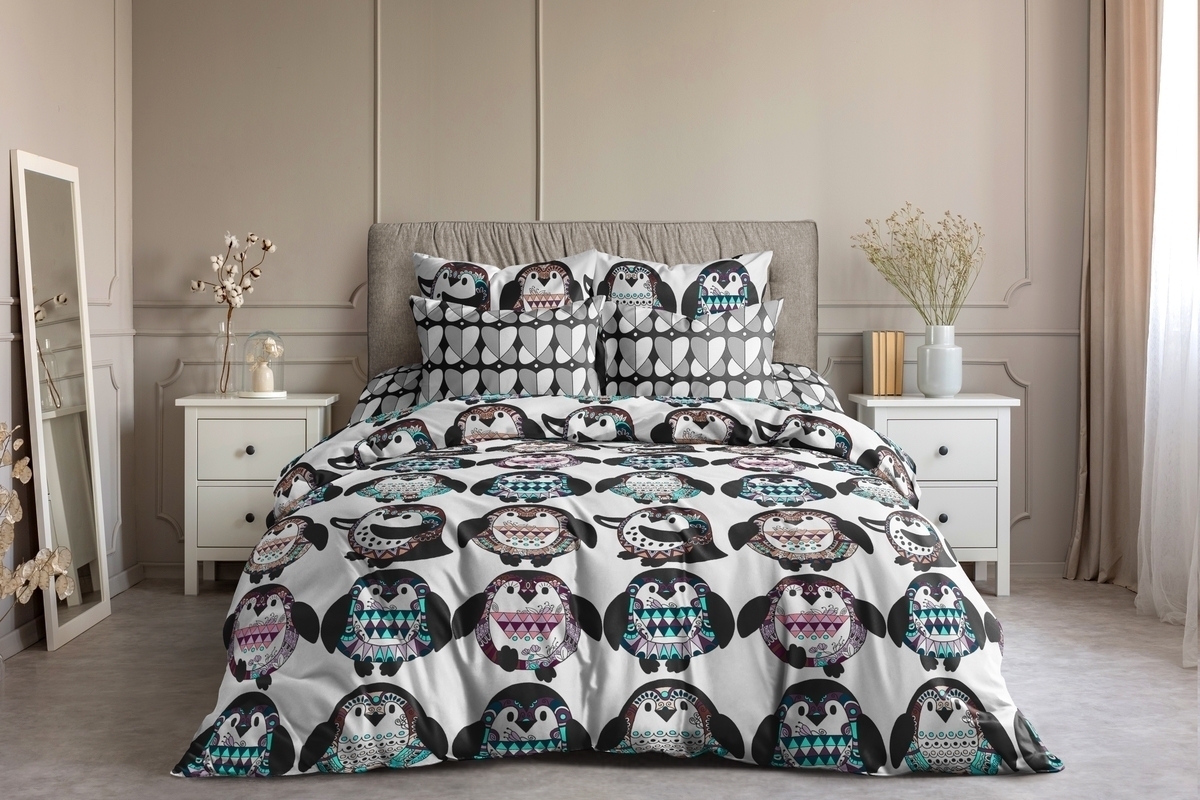 Товары компании представлены под торговой маркой «Веселина». Мы выпускаем постельное белье и покрывала из качественной бязи плотностью 125 гр. Бязь это хлопчатобумажная ткань, при производстве которой применяется самое простое переплетение полотняное. Поверхность материи получается одинаковой с обеих сторон, ровной и матовой. Экологичная, гипоаллергенная, износостойкая ткань отлично подходит для изготовления постельных принадлежностей. Комплектация комплекта: пододеяльник 215х145-2шт, простыня 240х220-1шт, наволочки - 2шт. Способ застегивания наволочки - клапан 20см, пододеяльника - отверстие без застежки снизу изделия, отстрочка по периметру, простыня - края обработаны с 4х сторон швом вподгибку 1 см с закрытым срезом.
