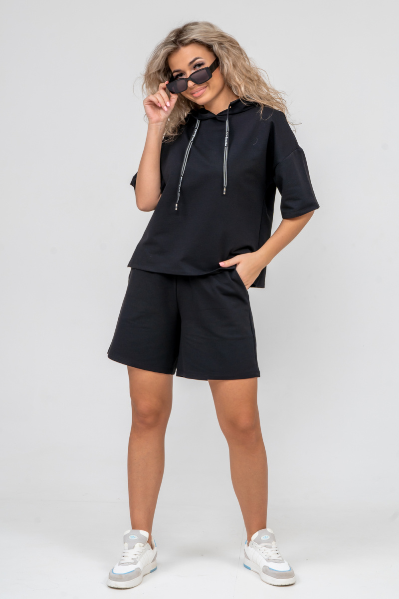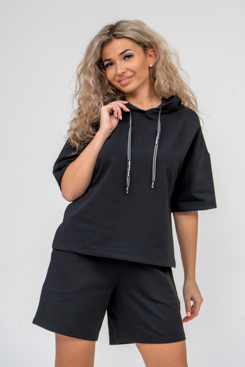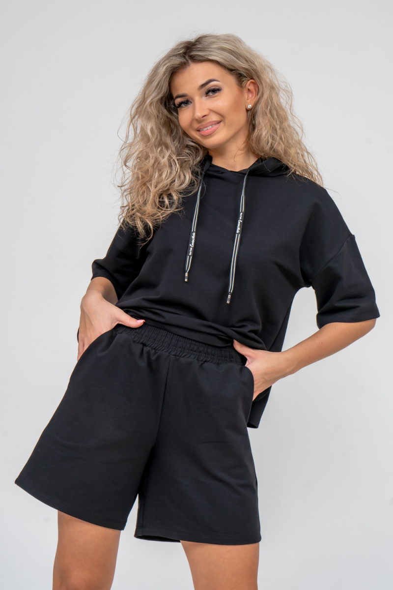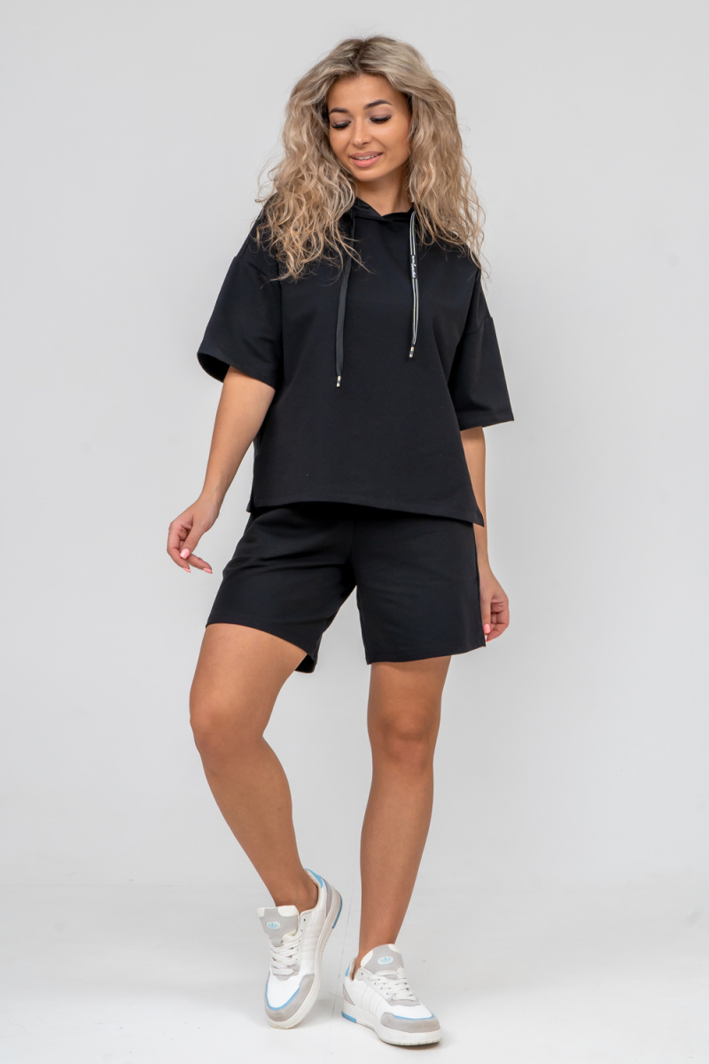 Женский костюм 2-ка выполнен из футера высокого качества с хлопком и небольшим добавлением полиэстера и лайкры, что позволяет изделию не скатываться и оставлять идеальный внешний вид на долгое время. Костюм состоит из толстовки и шорт. Толстовка с капюшоном и шнурком. Линия плеча спущена, рукав укороченный, по бокам имеются небольшие разрезы. Свободный крой прекрасно будет смотреться на дамах с любыми формами. Костюм такого плана представлен в широкой размерной сетке, что позволяет выбрать его как девушке, так и женщине. Однотонный костюм модных расцветок будет удачным выбором для поездок в отпуск, на пикник, для активного отдыха и прогулок по городу. Будет гармонично сочетаться как с кроссовками, так и с туфлями, балетками или босоножками. Используя эту модель в качестве домашнего костюма, Вы поймёте, что это именно тот самый идеальный вариант, в котором вы будете себя чувствовать удобно, комфортно и современно. Костюм с шортами - это настоящая находка для тех, кто ценит свою индивидуальность!