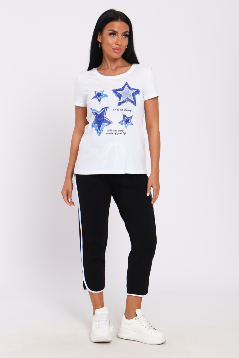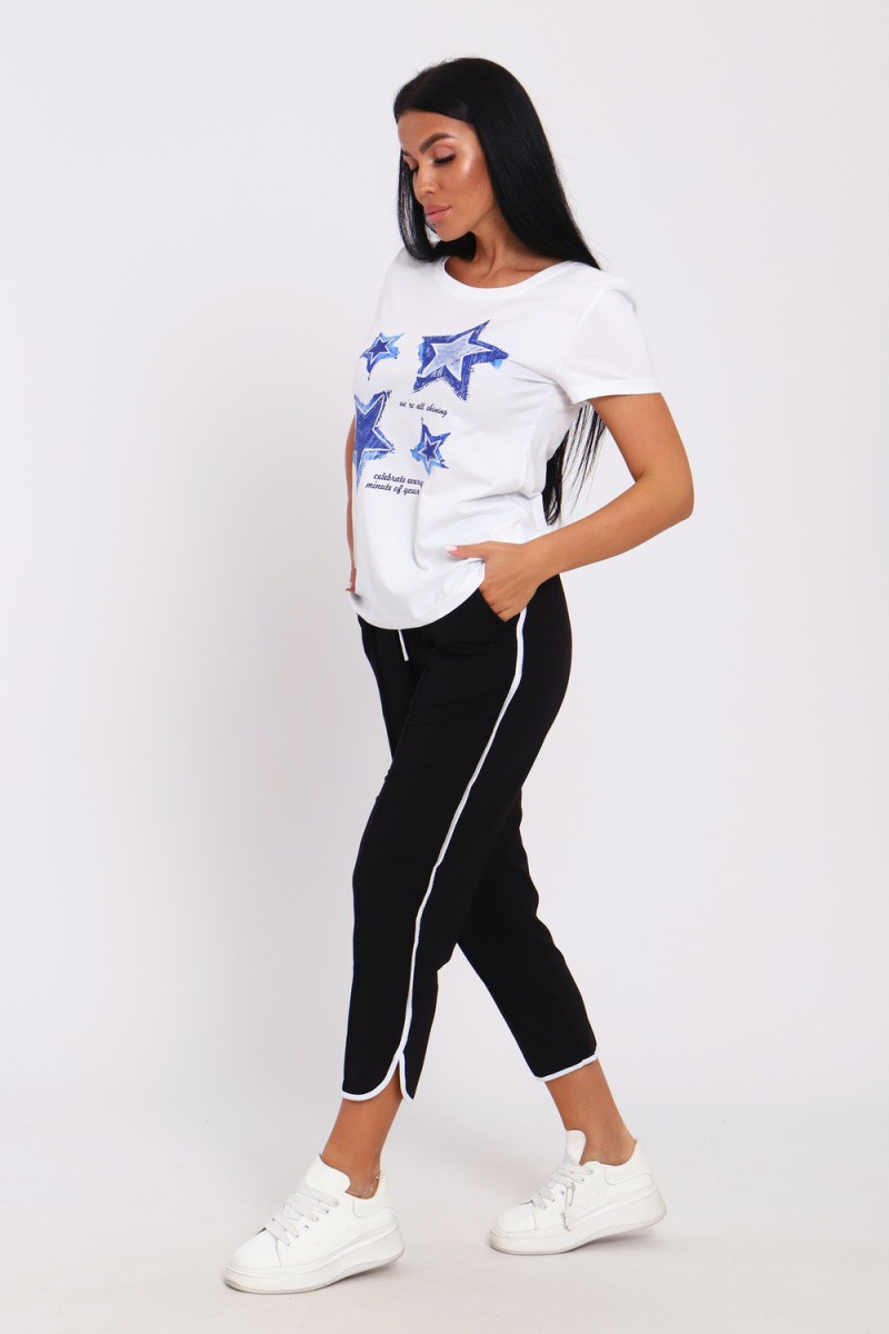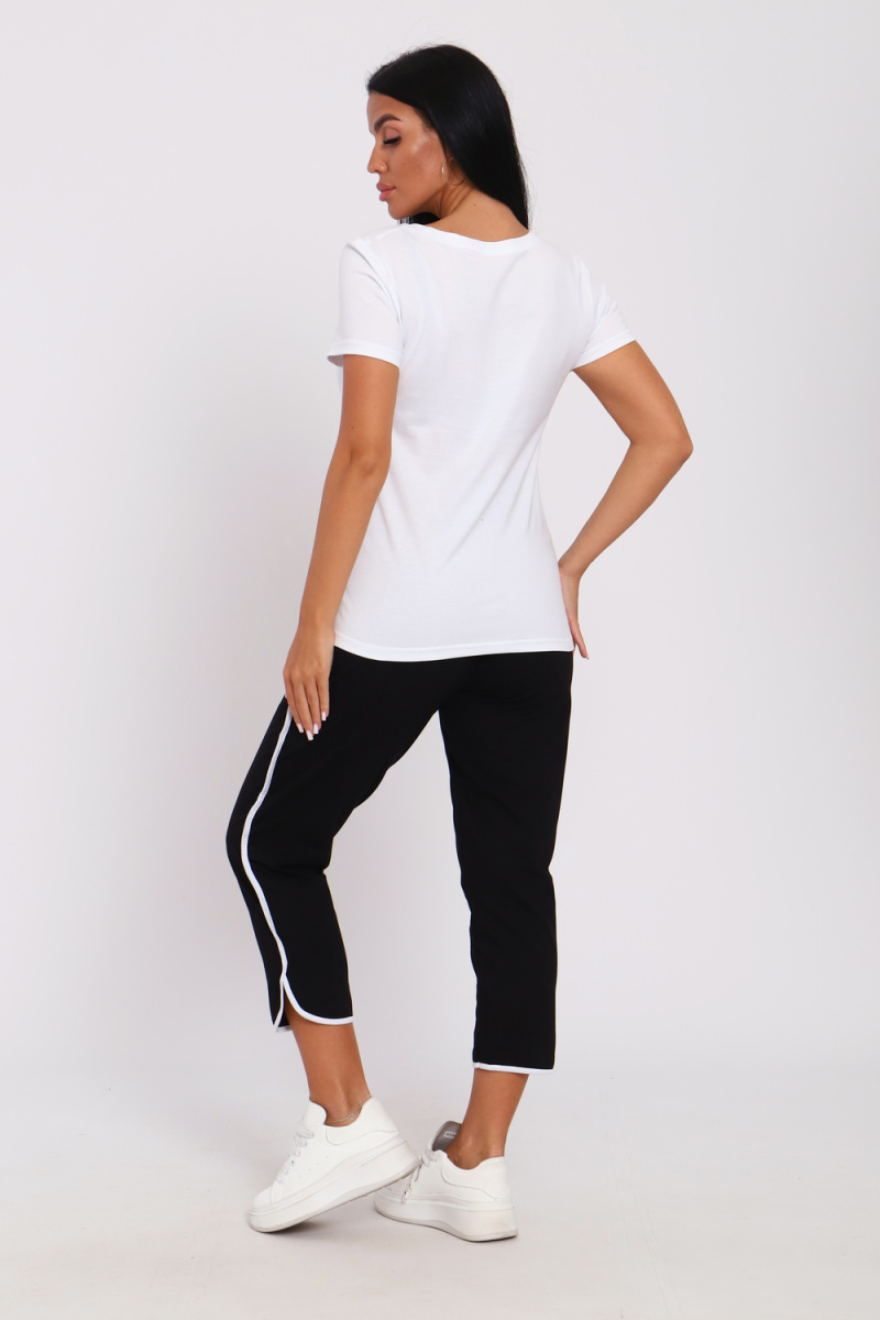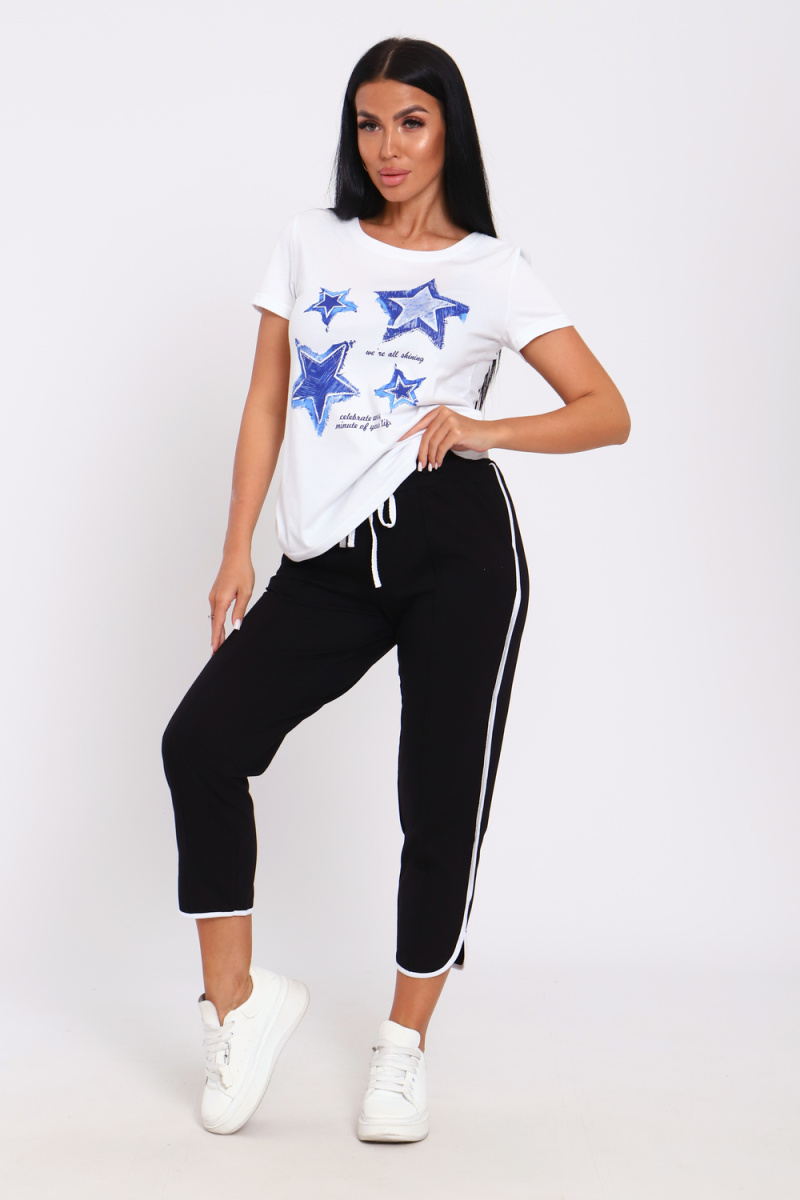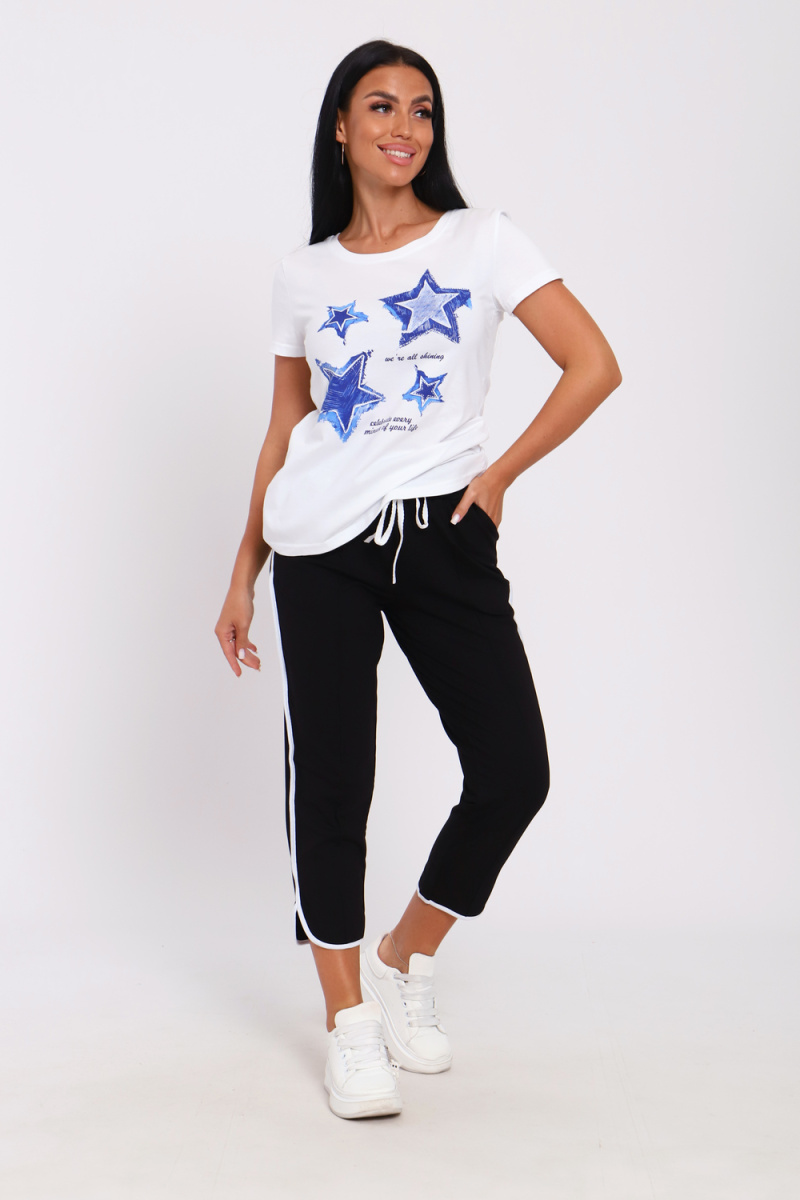 Костюм женский – это стильный и идеальный предмет гардероба ,идеально подходящий для дома и отдыха на любой период :весенний ,осенний, летний и зимний . Комплект состоит из футболки с красочным принтом и бриджи в контрастном цвете. В составе ткани хлопок , лайкра и полиэстер . Хлопковый материал очень комфортный и лёгкий в носке . Бриджи с удобной посадкой придадут вашему образу стильный и модный вид . Базовый современный костюмчик – популярный повседневный выбор на каждый день : на работу , для прогулок, праздников и на дачу . Универсальный стиль позволит вам создавать разнообразные образы , подходящие для любого события.